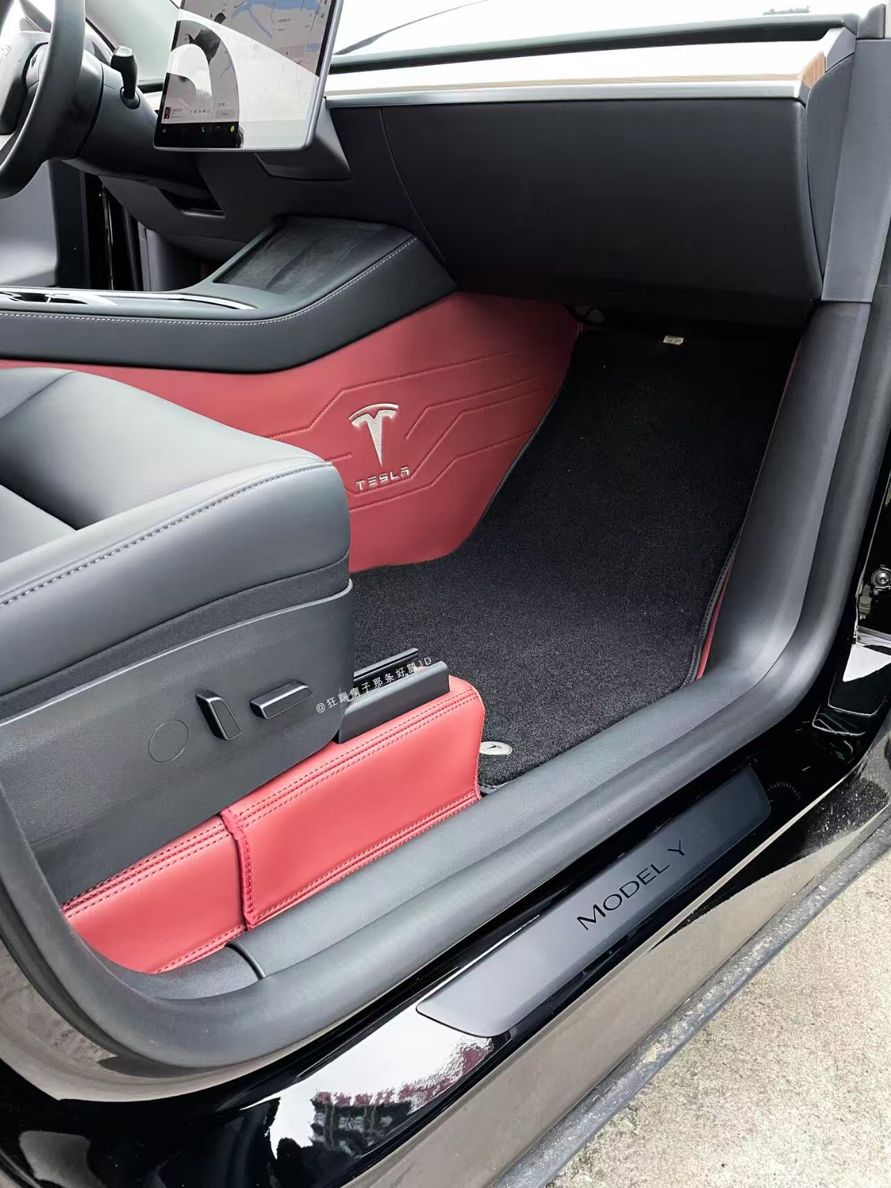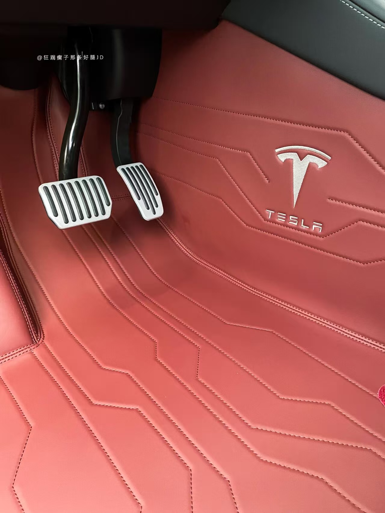 2019 to 2024 Tesla model Y Speed Indian Red Color Foot Pad Fully Surrounded 360 Airline Soft Pack Foot Pad