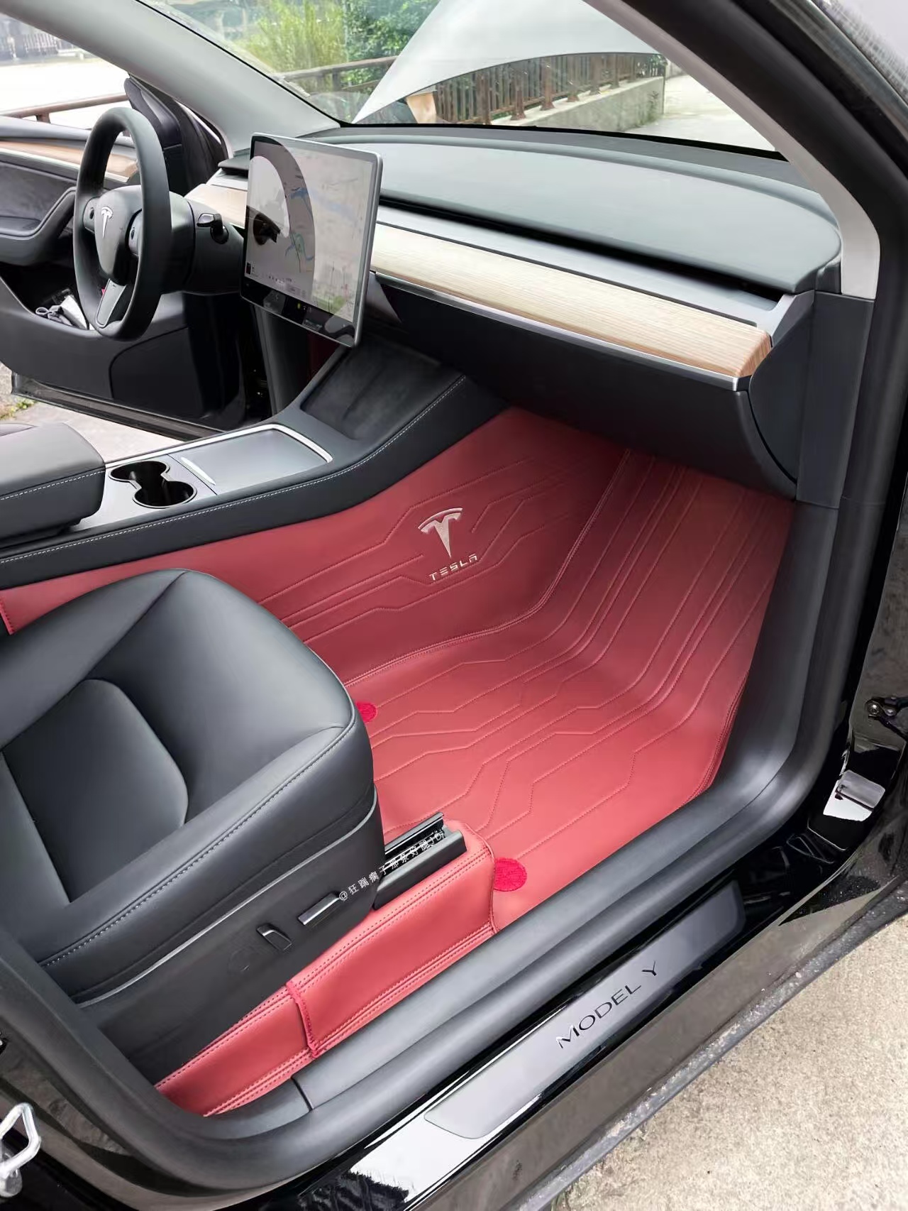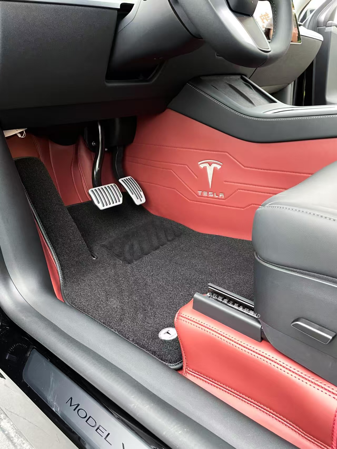 1 review for 2019 to 2024 Tesla model Y Speed Indian Red Color Foot Pad Fully Surrounded 360 Airline Soft Pack Foot Pad