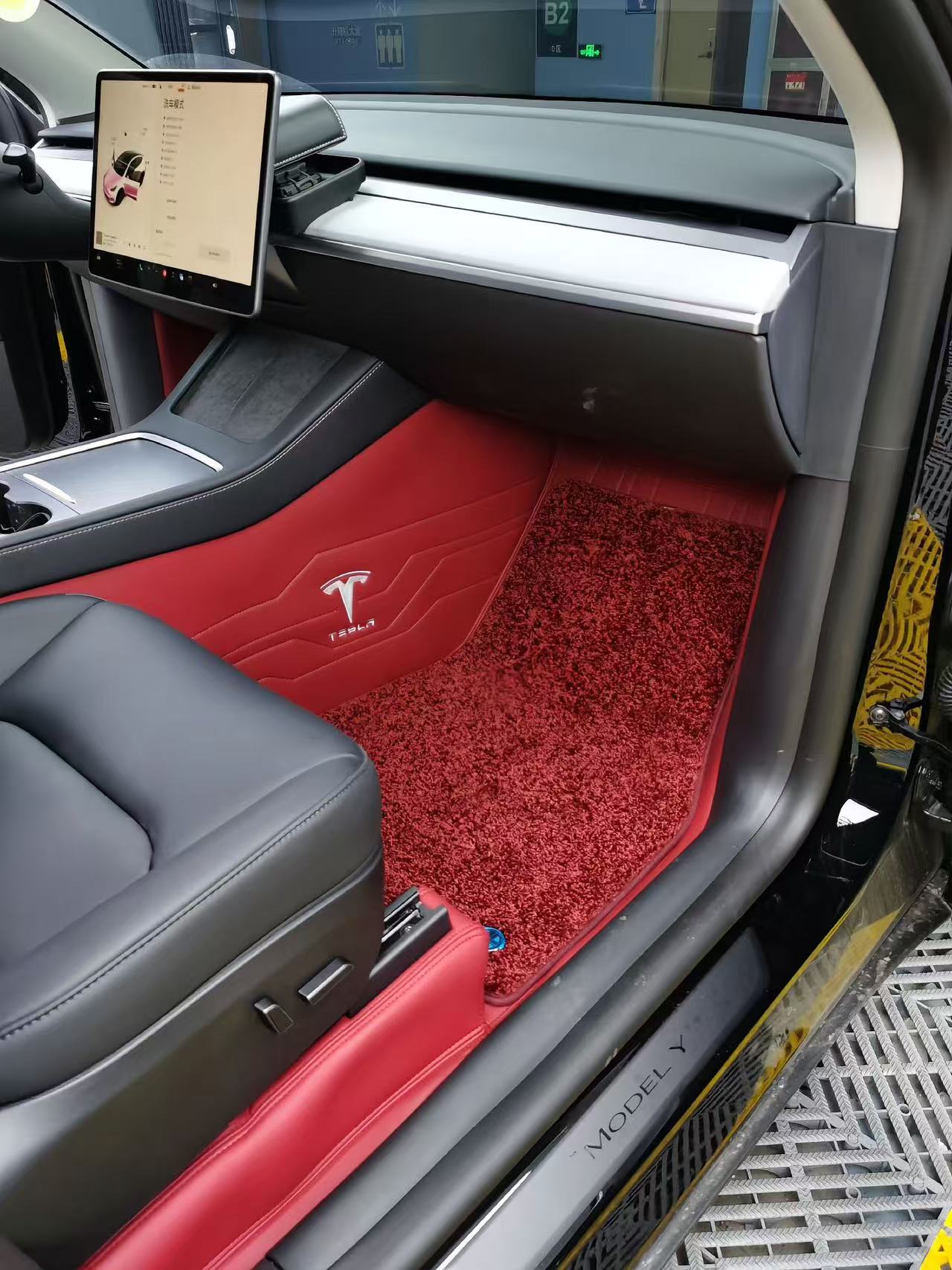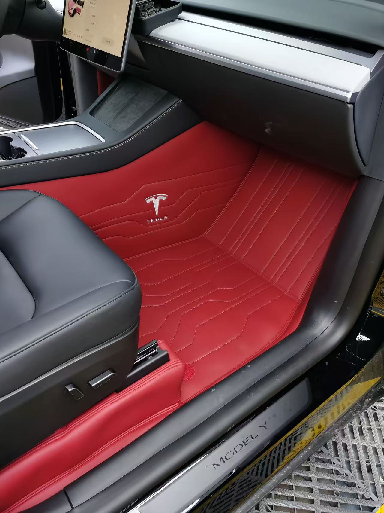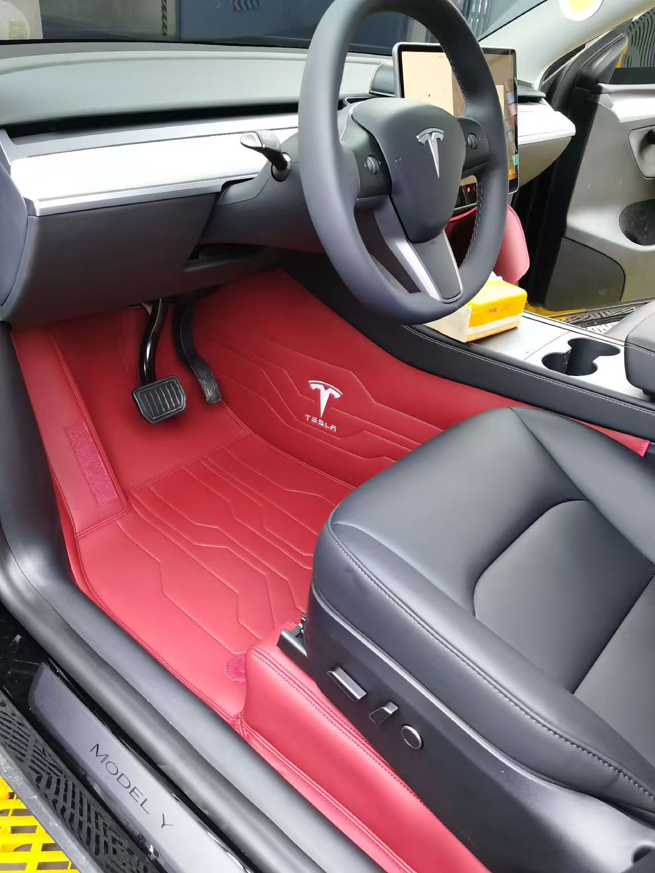 2019-2024 Tesla Model Y Volcano Red Floor Mat Fully Enclosed 360 Aviation Soft Bag Floor Mat